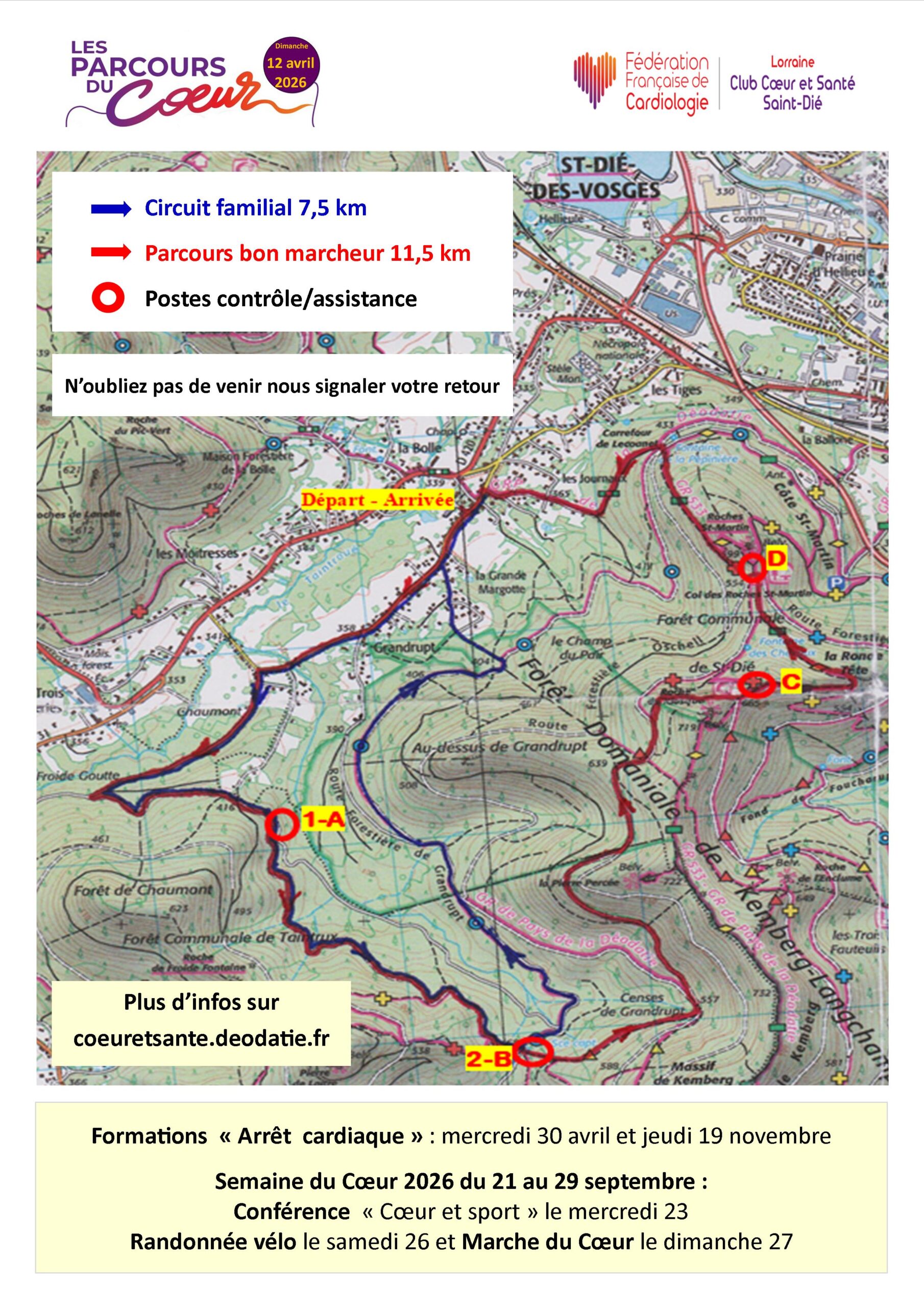 - Pour votre sécurité, un des participants à la sortie est porteur d’un défibrillateur et il y a toujours au moins une personne titulaire du PSC ou professionnelle de santé (infirmière, médecin).