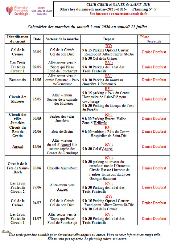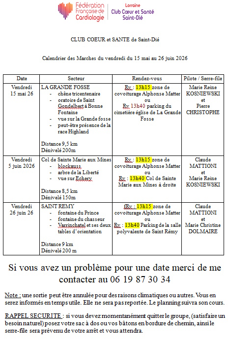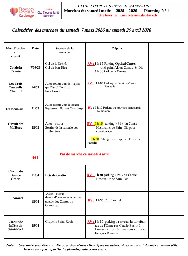 Retrouvez le calendrier des marches du samedi au format PDF :