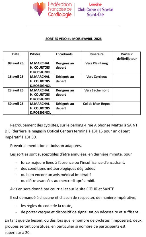 Avis en sera donné par courriel et sur le site CŒUR et SANTE