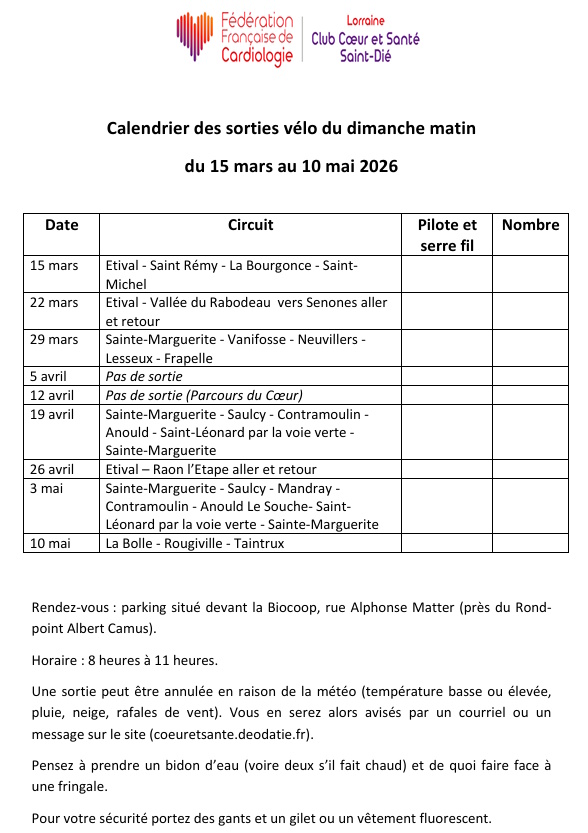 Retrouvez le calendrier des sorties vélo du dimanche matin au format PDF :