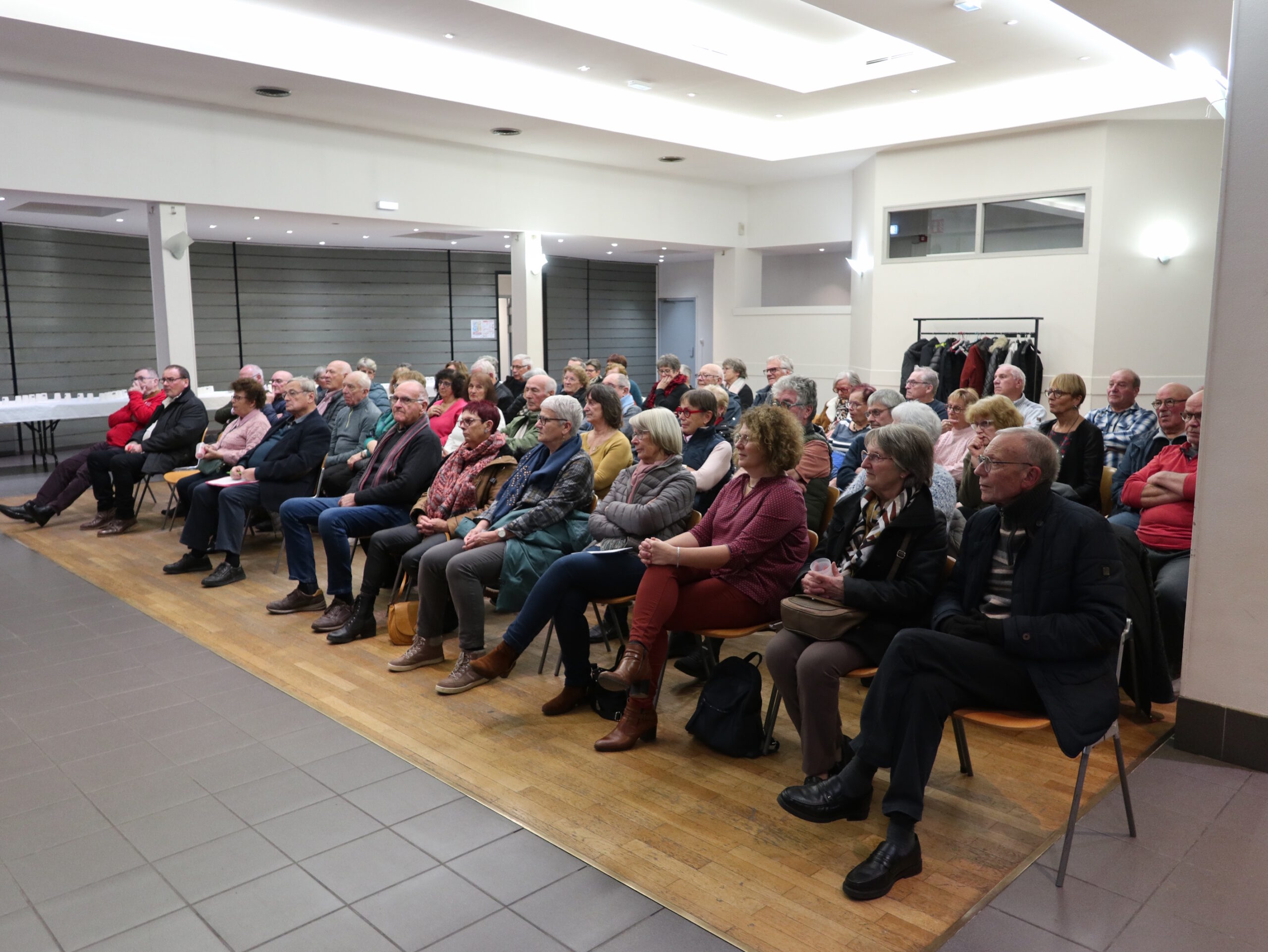 Les participants à l’AG 2025 avec du premier rang aux 4ème et 3ème places à partir de la droite Catherine Viry (représentant le maire) et Isabelle Nérad-Spiry (représentant l’IEN)