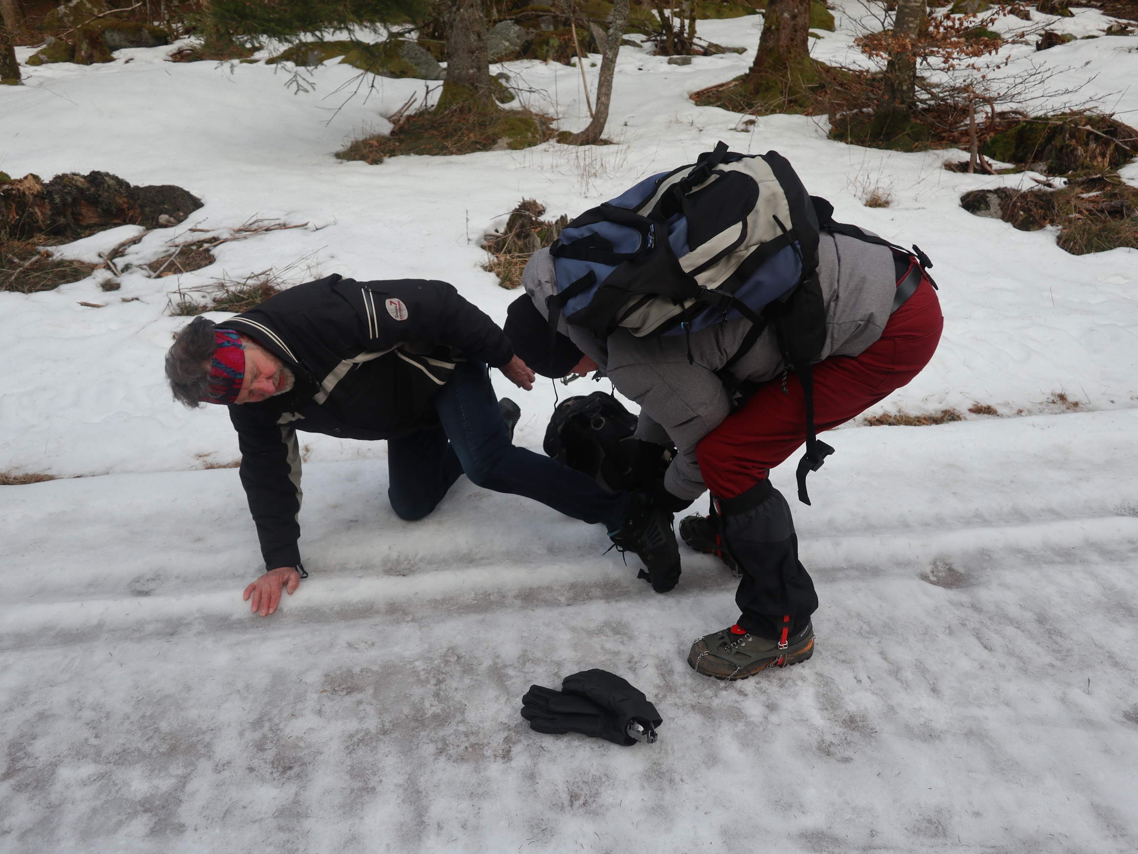 Toutefois, la présence de glace sur de nombreuses parties des circuits rendait utile l’utilisation de crampons.