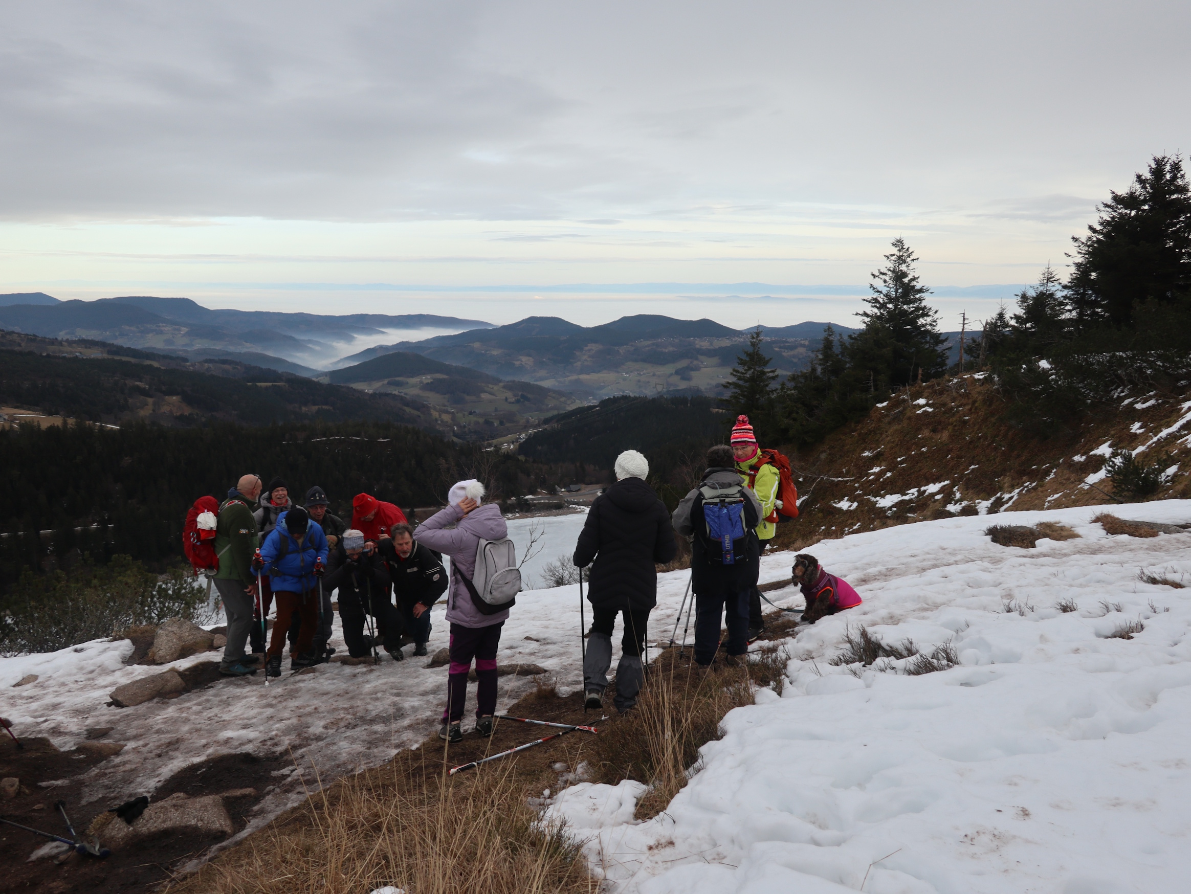 Et, le jeudi 22 janvier une trentaine de membres des deux clubs se sont retrouvés au col du Calvaire pour sortie initialement prévue avec des raquettes, mais qui s’est transformée en marche du fait de l’insuffisance de l’enneigement.