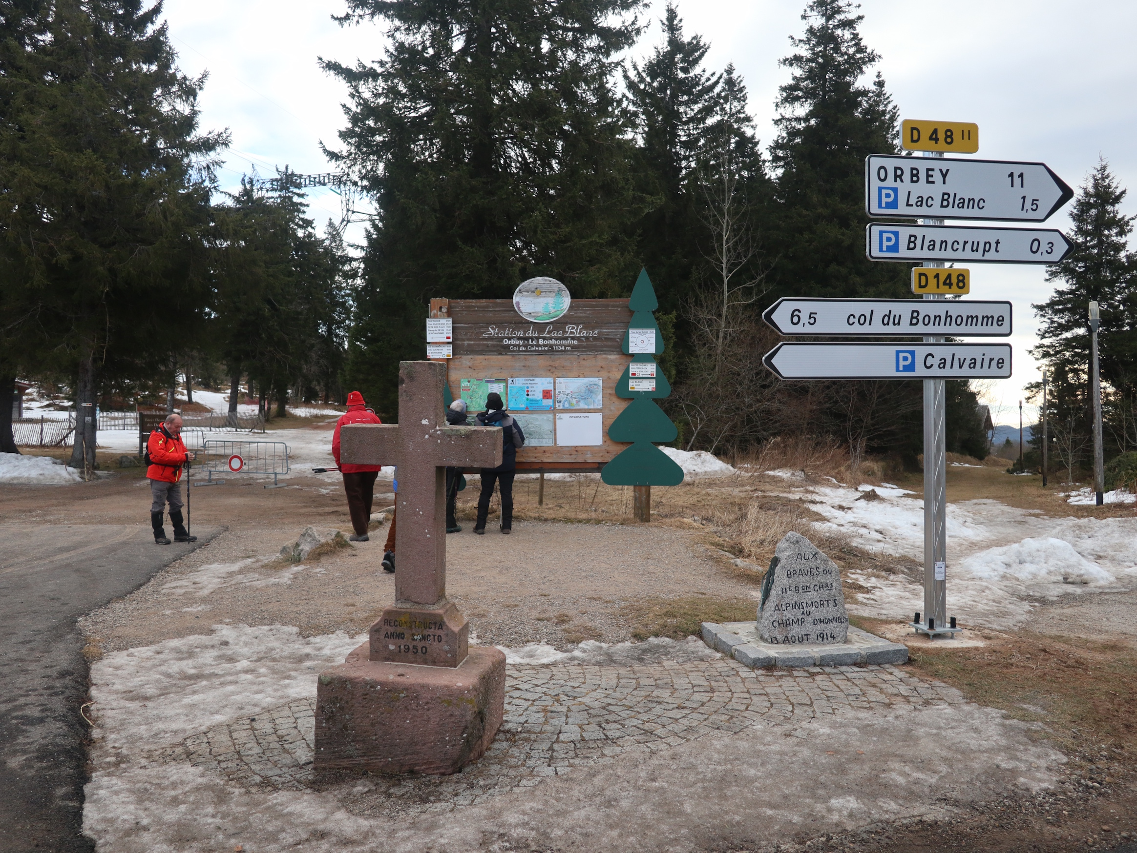 La marche du matin a emprunté un circuit passant par le carrefour du cimetière militaire Duchesne, une nécropole nationale de la Première Guerre mondiale situé au pied de la tête des Faux, à l’emplacement d’un ancien camp militaire. Elle porte le nom du commandant Duchesne, chef de bataillon du 215e RI, mort le 2 décembre 1914 à la Tête des Faux. Elle regroupe à l’ombre de la forêt les tombes de 294 soldats et un ossuaire où reposent 116 soldats décédés sur le secteur ou au Linge. Il s’agit en grande partie de chasseurs alpins.