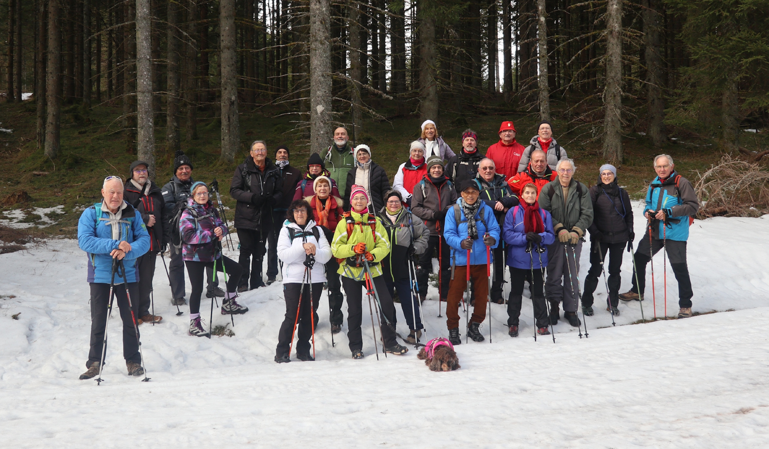 Et, le jeudi 22 janvier une trentaine de membres des deux clubs se sont retrouvés au col du Calvaire pour sortie initialement prévue avec des raquettes, mais qui s’est transformée en marche du fait de l’insuffisance de l’enneigement.
